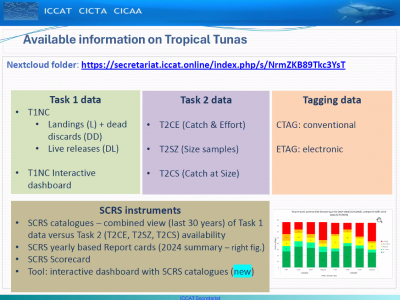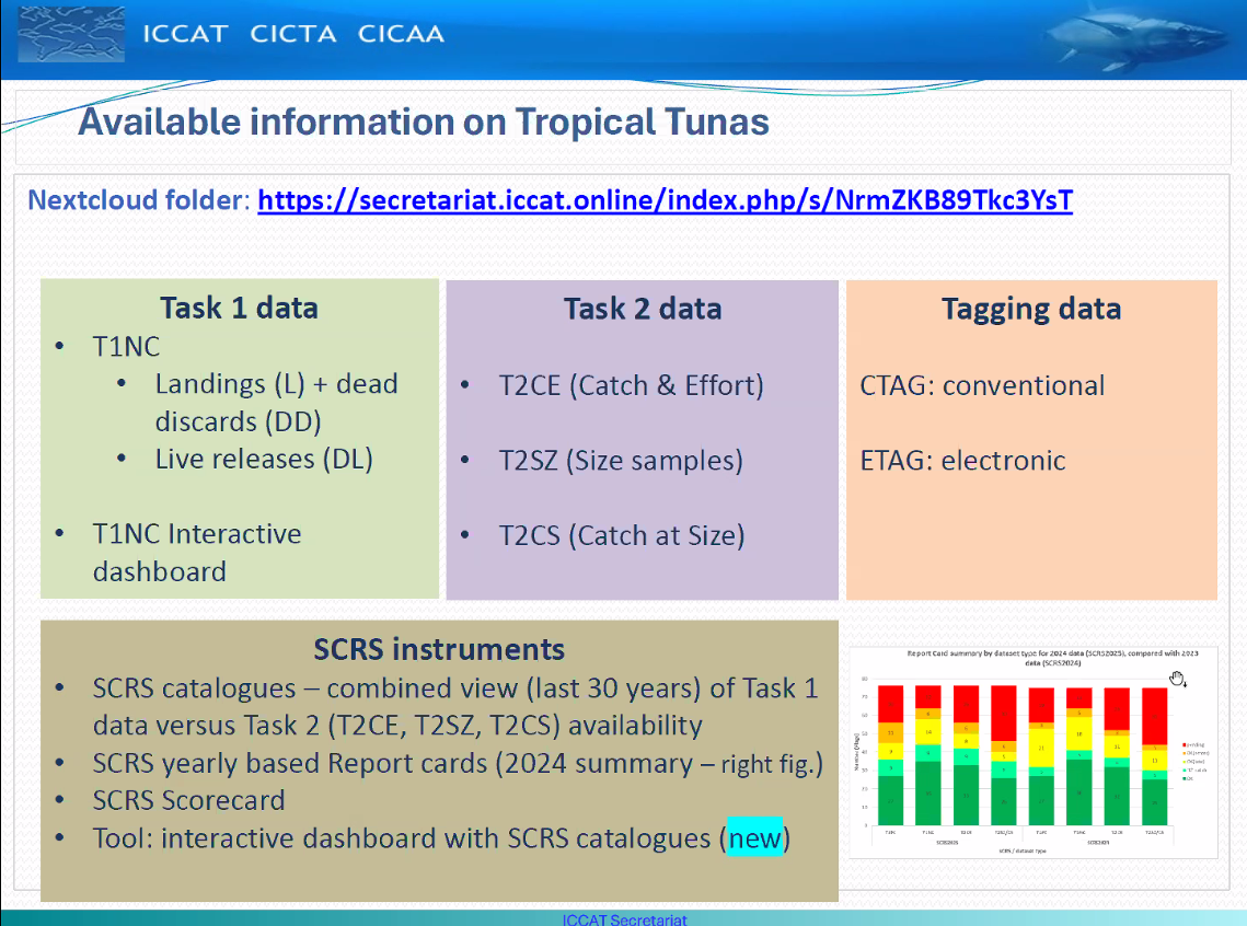 - обсуждение задач обновления и совершенствования баз данных ИККАТ, продолжения стандартизации исторических данных и развития новой информационной системы ИККАТ (англ. ICCATonlinemanagementsystem - IOMS), предназначенной для ввода и хранения отчетных и статистических материалов.
