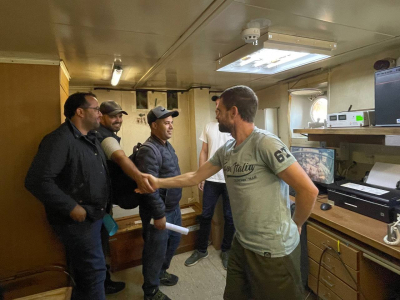 На борт СТМ «Атлантида» (капитан Дмитрий Владимирович Горохович) прибыл специалист НИРИ, который будет работать совместно с российской научной группой (12 ученых) в ходе предстоящих работ.