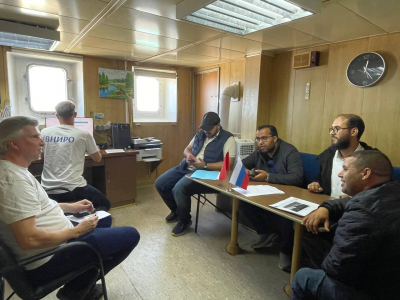 В рамках второго этапа Большой африканской экспедиции научно-исследовательское судно СТМ «Атлантида» зашло в порт Дахла. На борту судна состоялась Встреча экспертов Атлантического филиала ГНЦ РФ ФГБНУ «ВНИРО» («АтлантНИРО») и Национального института рыбохозяйственныхисследований Марокко (НИРИ) с целью согласования программы совместных исследований в зоне Марокко.