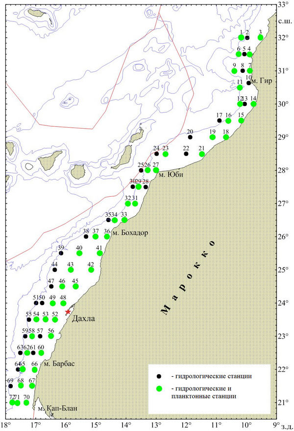 Выполнение научно-исследовательских работ в районе Марокко является важной составляющей российско-марокканского сотрудничества в области морского рыболовства и основой для доступа российского рыбодобывающего флота к рыбным ресурсам этой страны. Получаемые данные имеют прикладное значение для улучшения качества прогноза промысловой обстановки в районе, а также способствуют устойчивому и рациональному промыслу в атлантической рыболовной зоне Марокко.