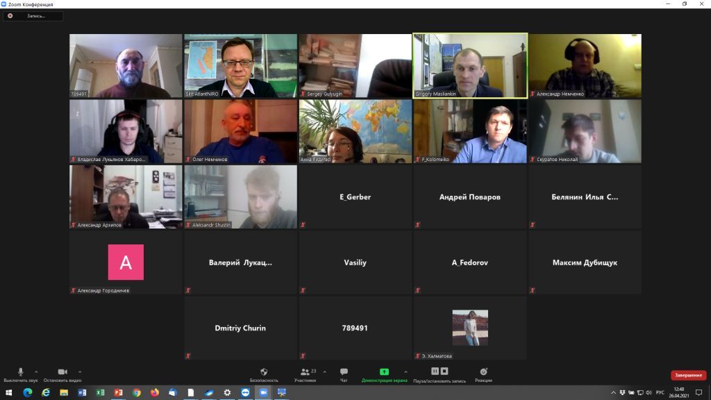 27 апреля 2021 г. в Атлантическом филиале ФГБНУ «ВНИРО» («АтлантНИРО») завершилась основная часть курсов повышения квалификации по теме «Подготовка научных наблюдателей для работы на российских судах тралового лова в Центрально-Восточной Атлантике», которые проходили в период 19-27 апреля в формате видеоконференцсвязи. Курсы были организованы АтлантНИРО в рамках утвержденной ФГБНУ «ВНИРО» в декабре 2020 г. «Программы развития кадрового потенциала ФГБНУ «ВНИРО» на 2020-2023 гг.».
